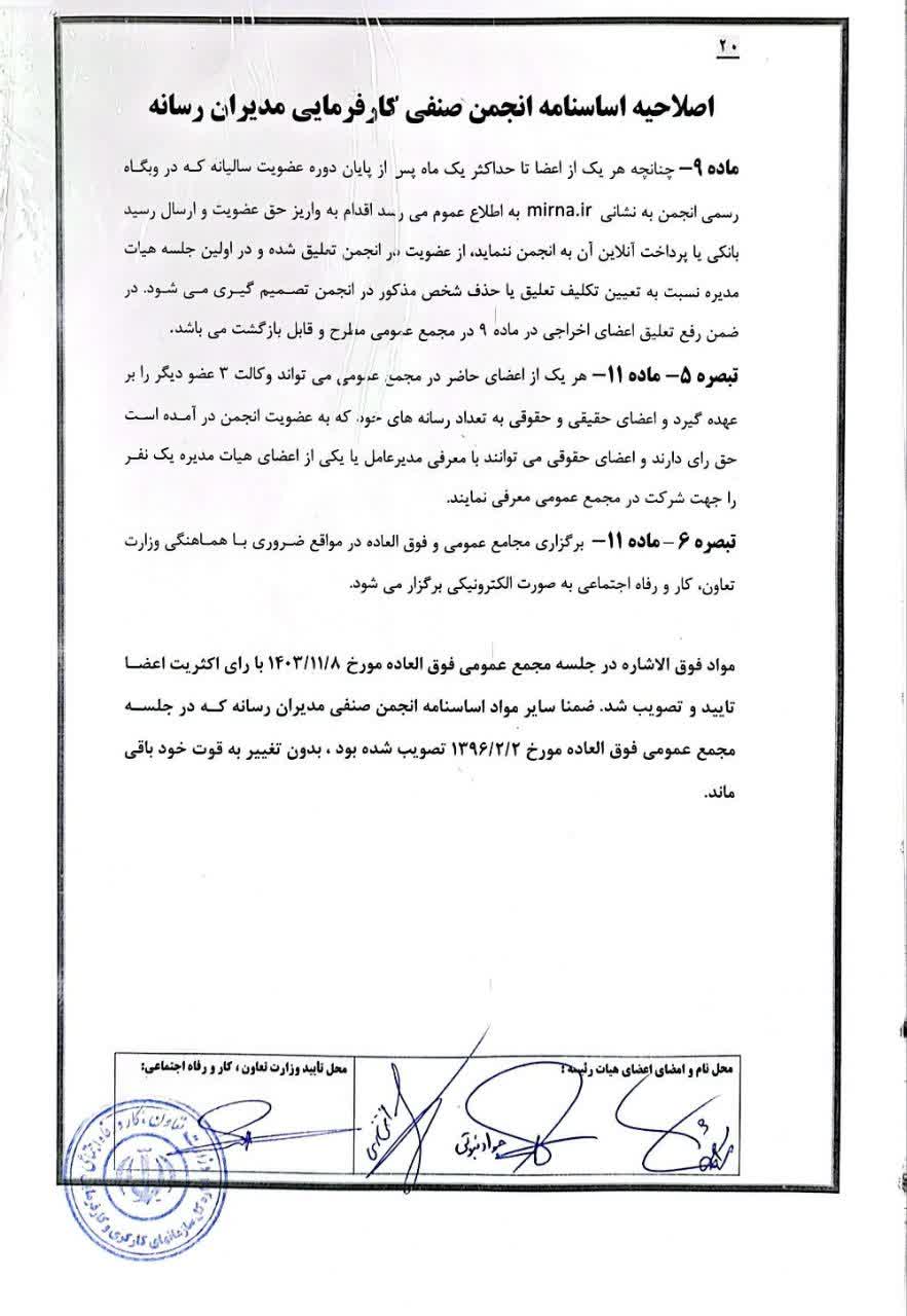 اساسنامه انجمن صنفی مدیران رسانه