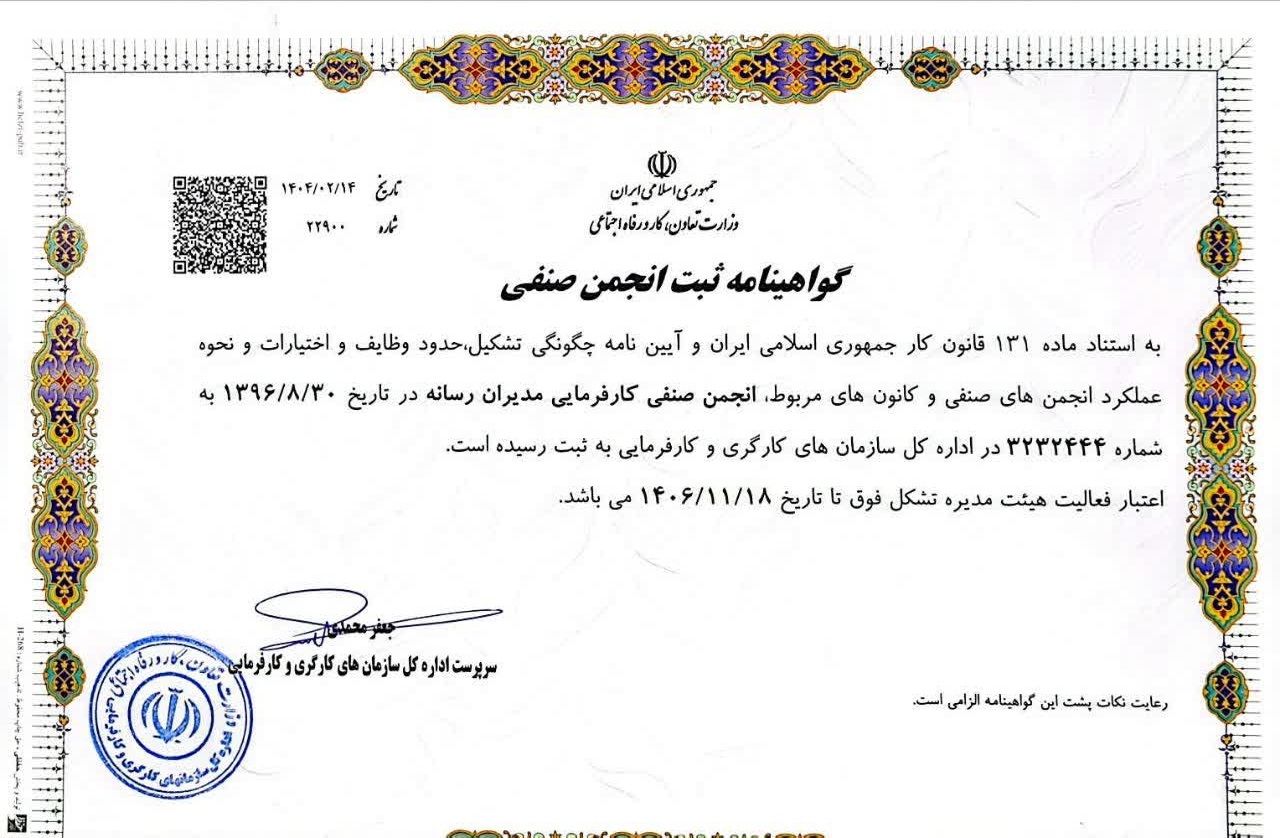 جهت خواندن اساسنامه انجمن صنفی مدیران رسانه روی لینک زیر کلیک کنید: