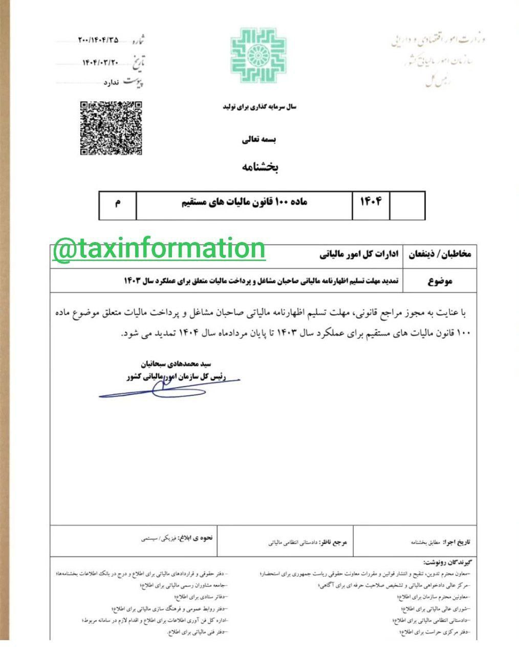 تمدید مهلت ارسال اظهارنامه مالیاتی رسانه های حقیقی تا پایان مرداد ۱۴۰۴